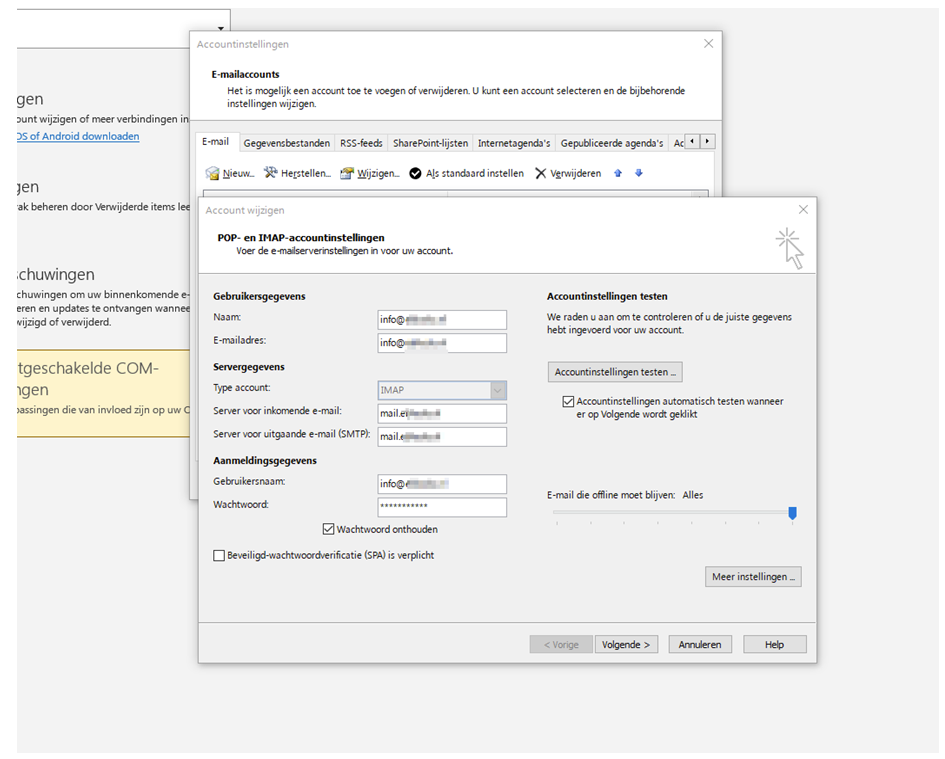 Klik op OK, volgende, afsluiten en het emailadres is geinstalleerd.