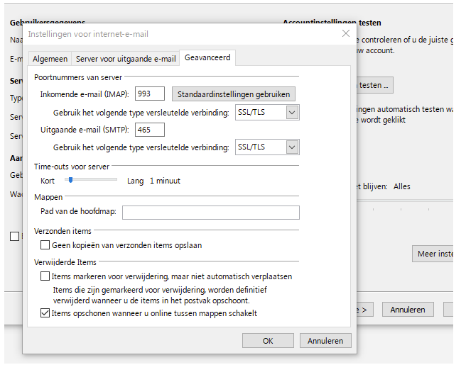 Server voor uitgaande email: mail.uwdomein.nl (Poort 993 SSL/TLS)