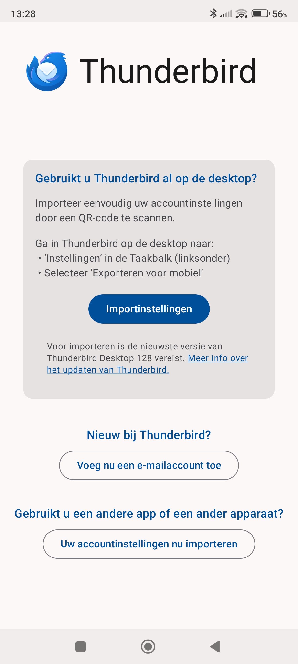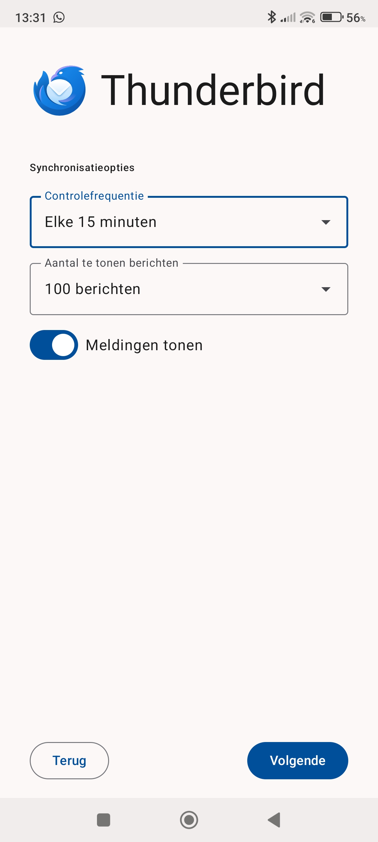 Installeer de Thunderbird app en open hem
