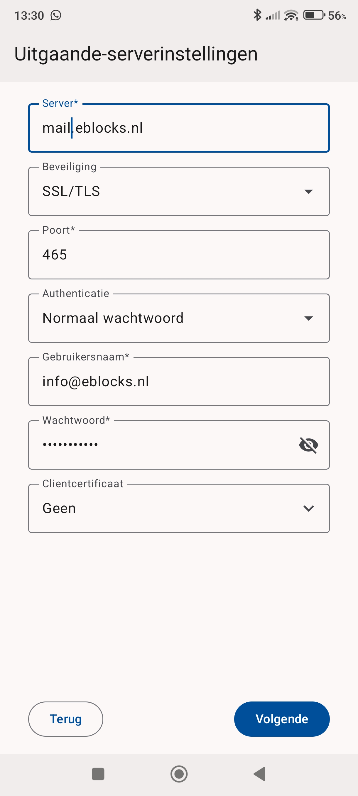 Server: mail.uwdomein.nl (verander uwdomein voor uw eigen domeinnaam)