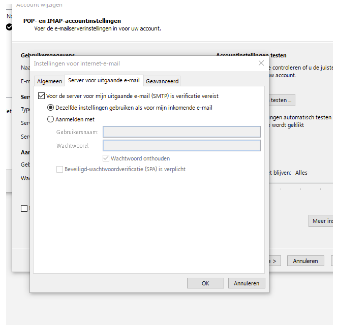 Tablad 2:: Dezelfde instellingen gebruiken als voor mijn inkomende mail