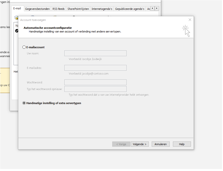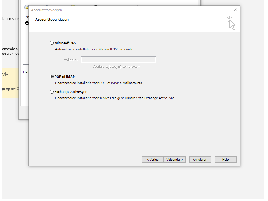 Kies voor handmatige instelling, de optie " POP of IMAP"