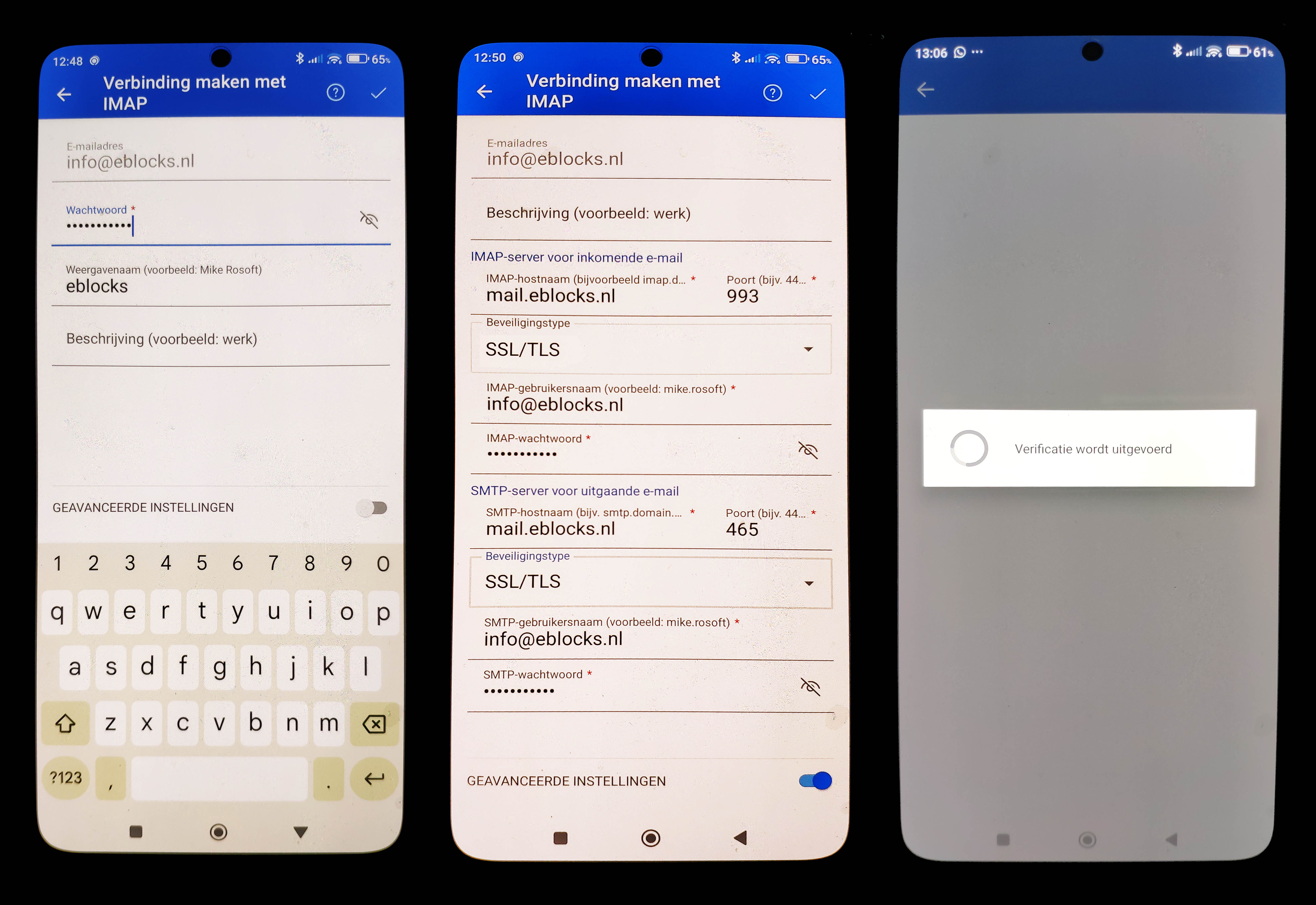 Kijk je opnieuw in de opgegeven instellingen, zie je bij inkomende mailhostname hier ineens poort 465 staan, in plaats van poort 993.