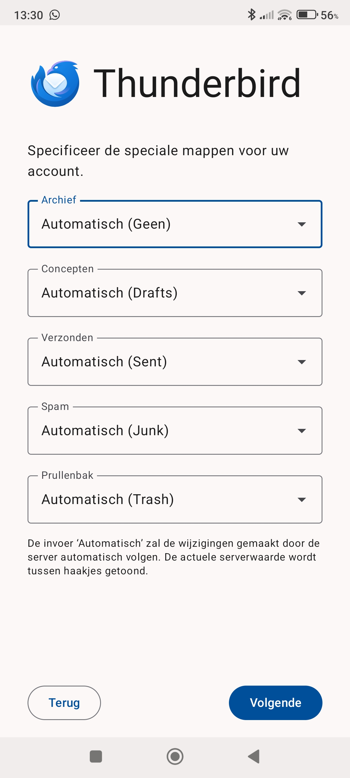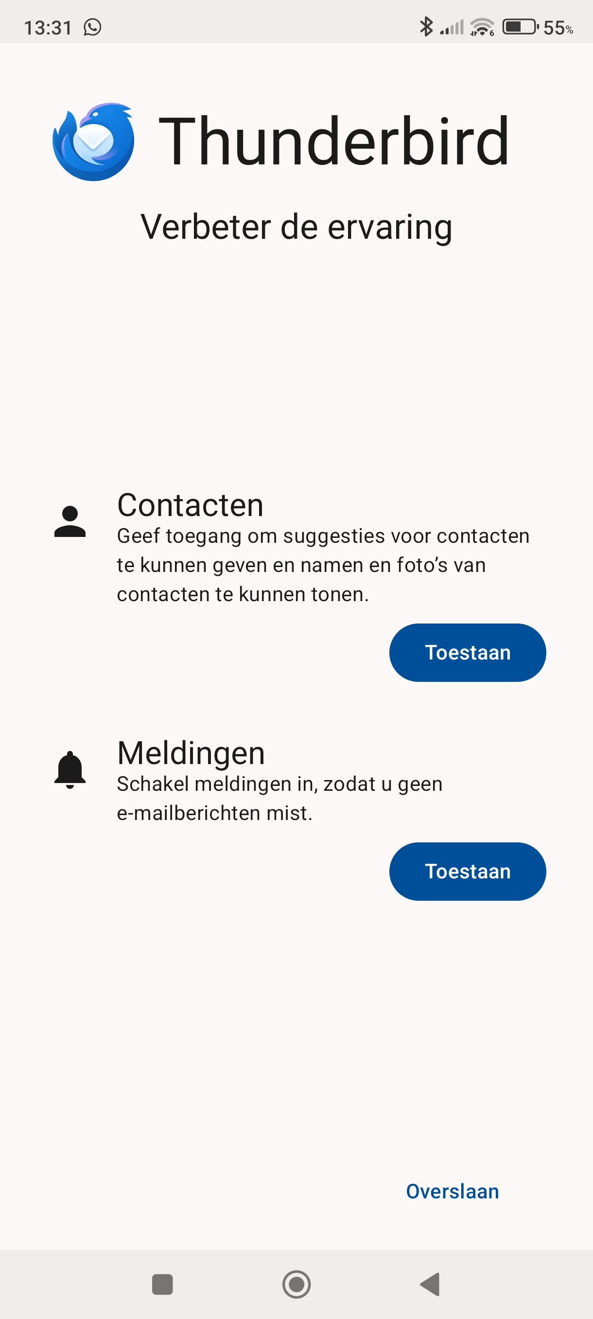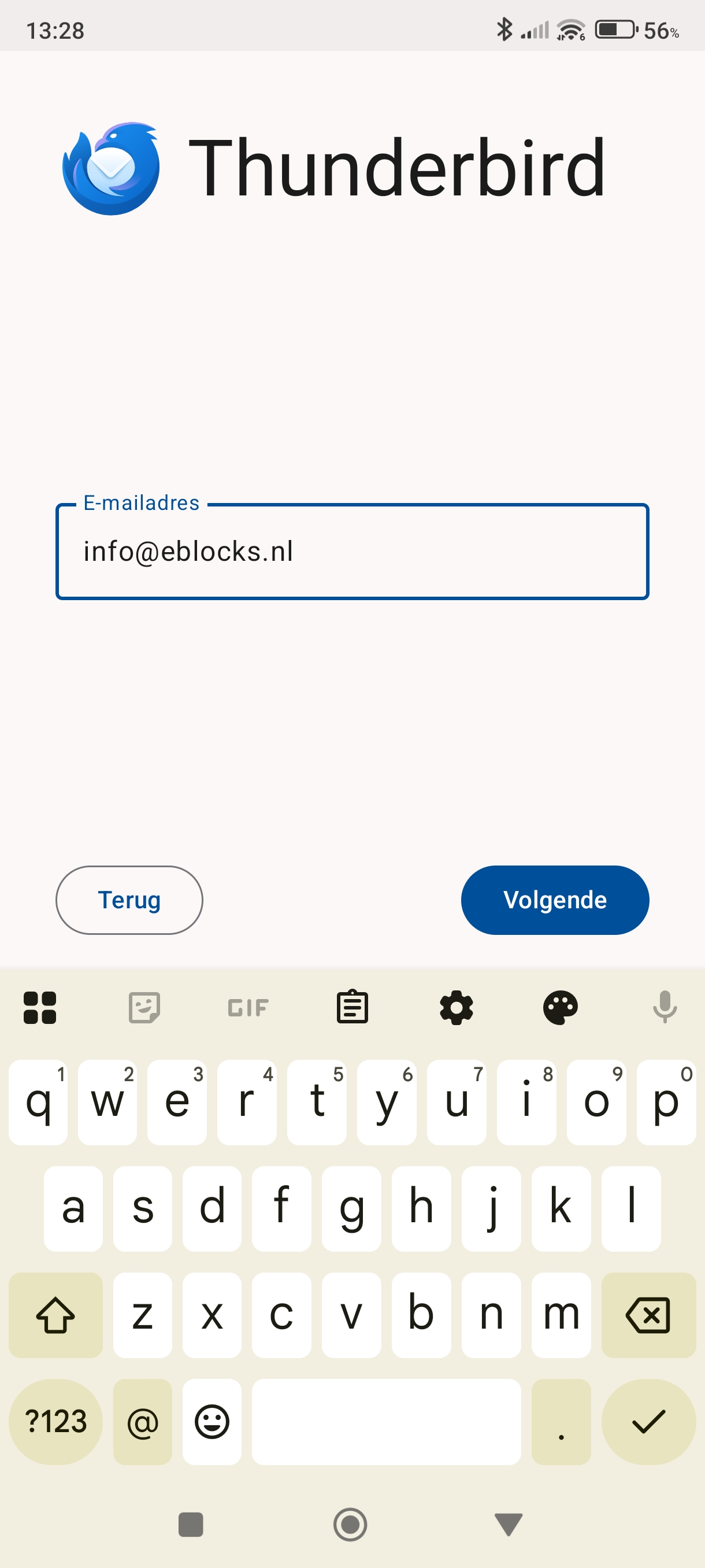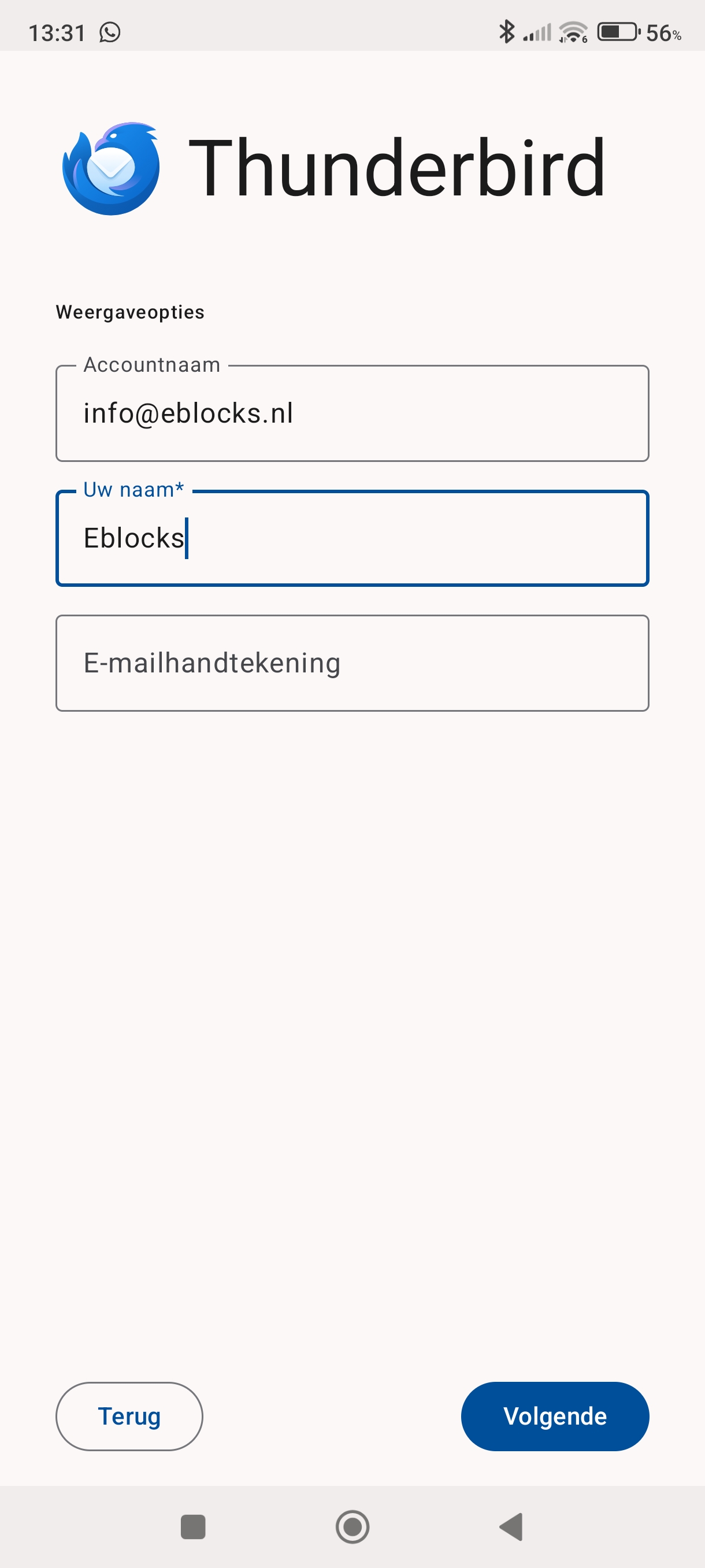 Installeer de Thunderbird app en open hem